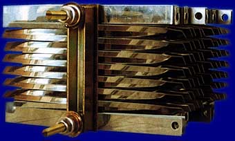 ____________ GRIDS PREPARATION ____________ After being cut out, the consecutive bands of a grid are alternatively separated and insulated from each other by an internal separator consisting of a box or stainless steel flanked by two sheets of mica.